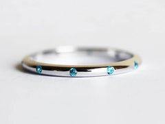 This beautiful thin eternity blue Topaz ring made in 14k or 18k gold, pictured in white gold makes for an ideal wedding ring, birthstone or mother/mom ring or a simple stacking band.