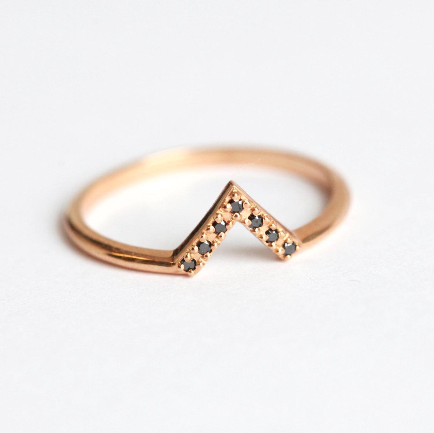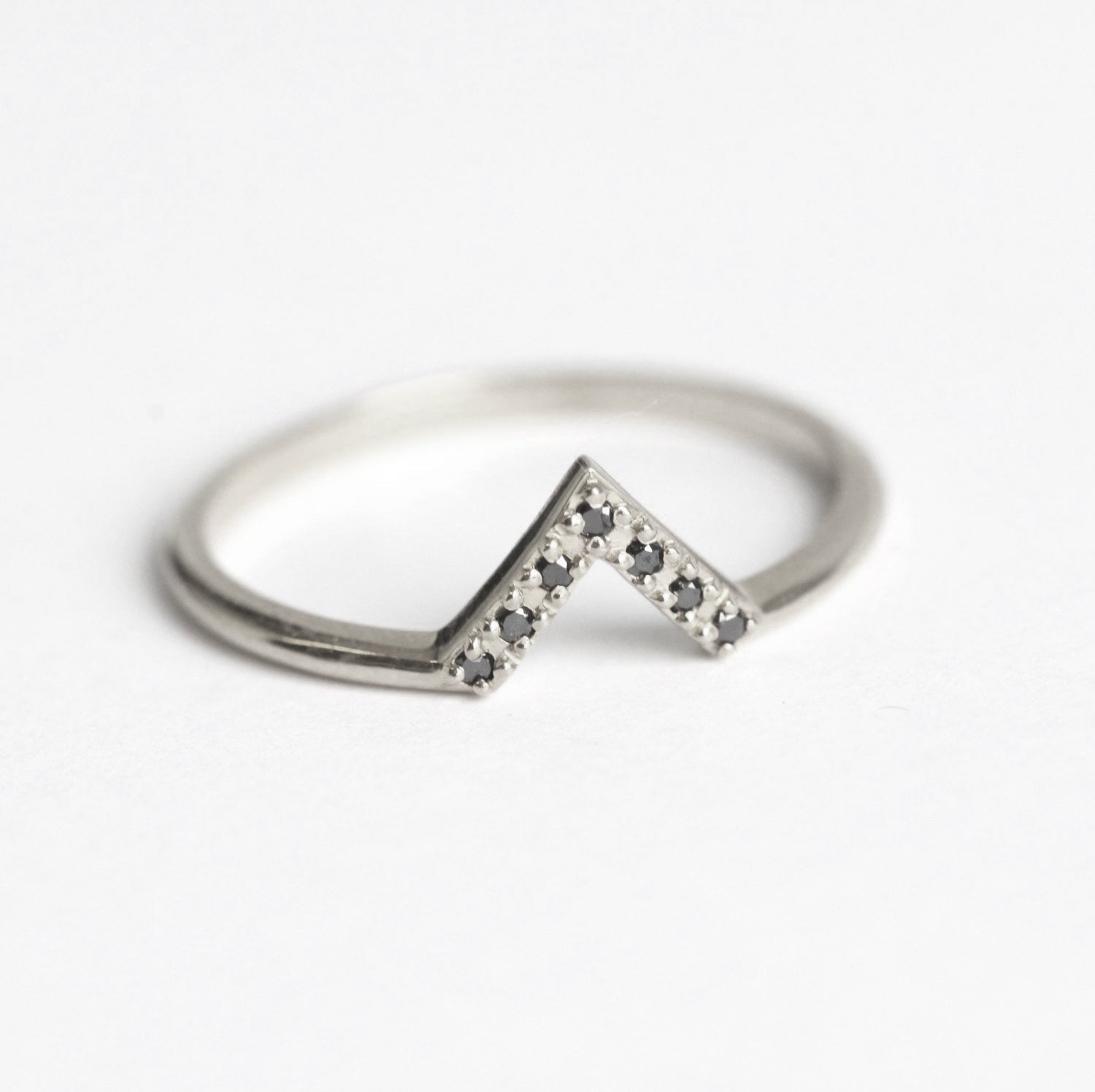 Elegant Black Diamond Chevron Ring Ready to Ship