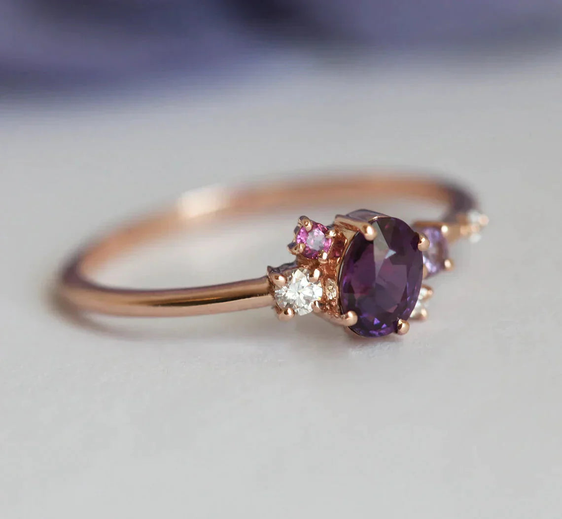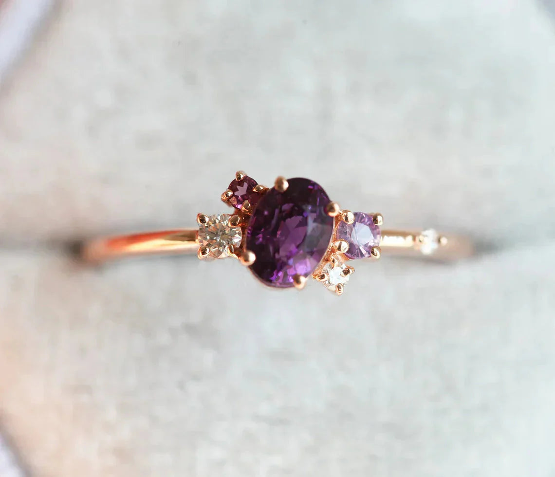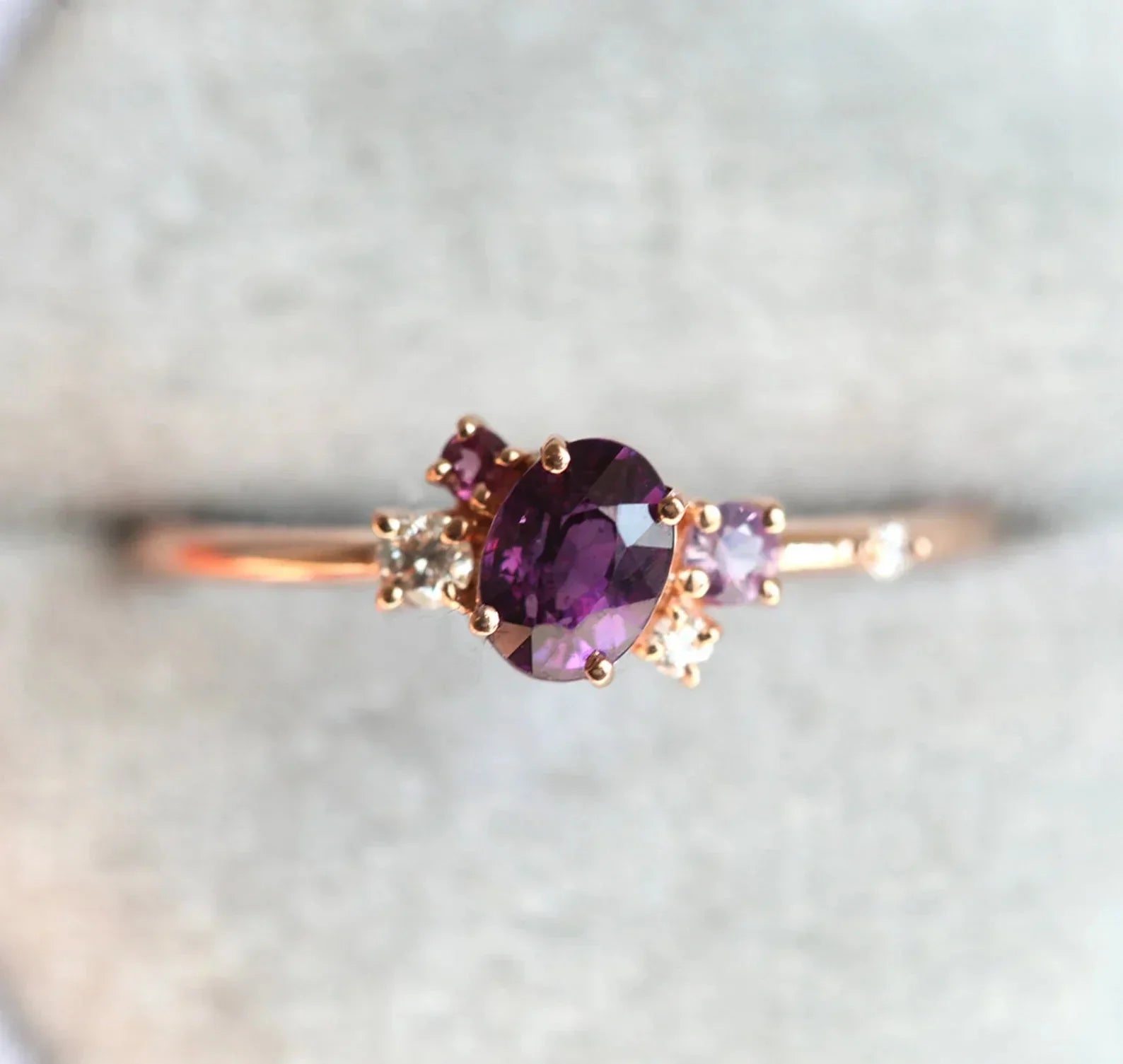 Carey Purple Sapphire Amethyst Diamond Cluster Ring