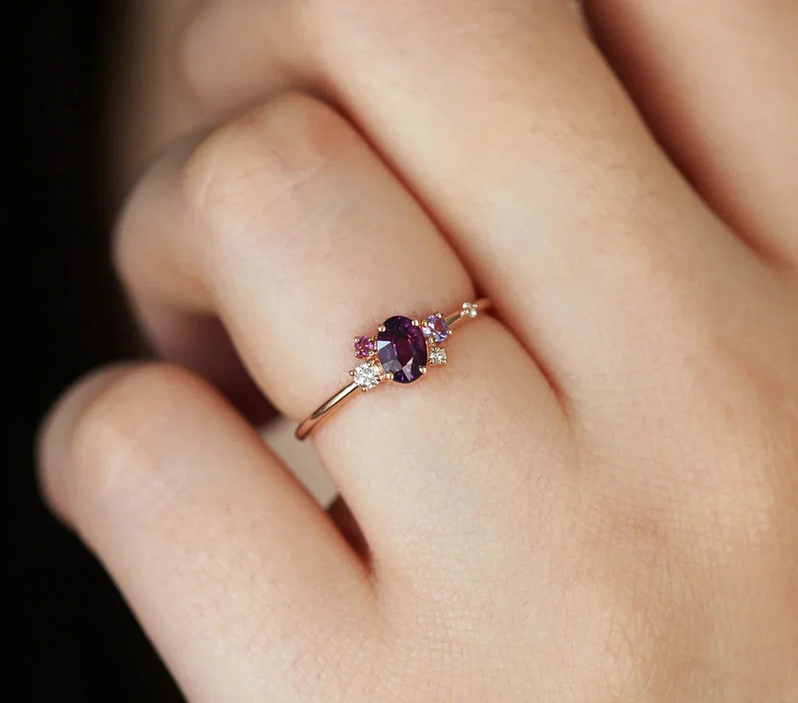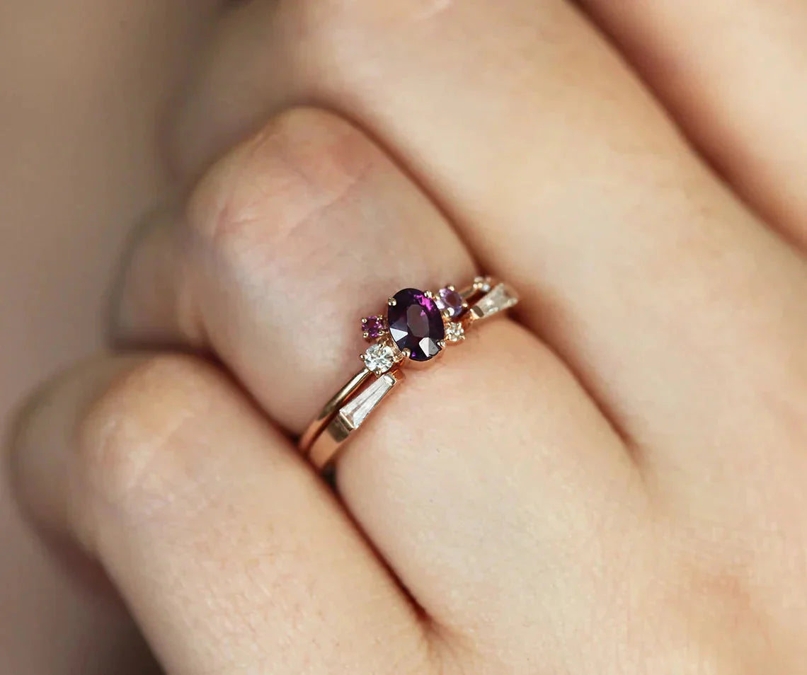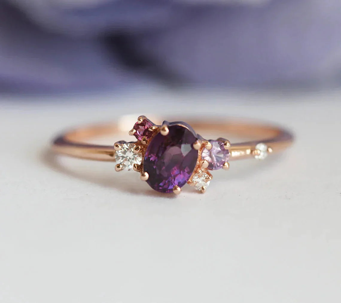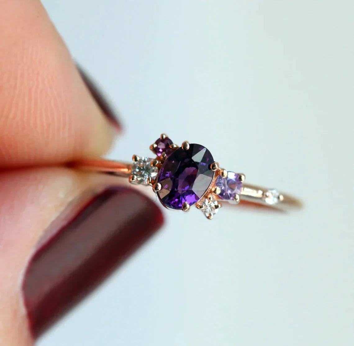 Carey Purple Sapphire Amethyst Diamond Cluster Ring