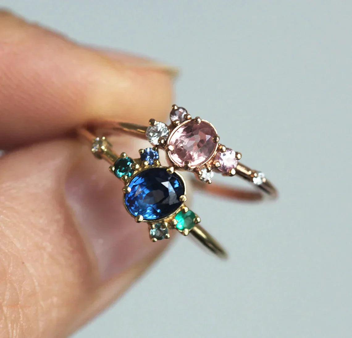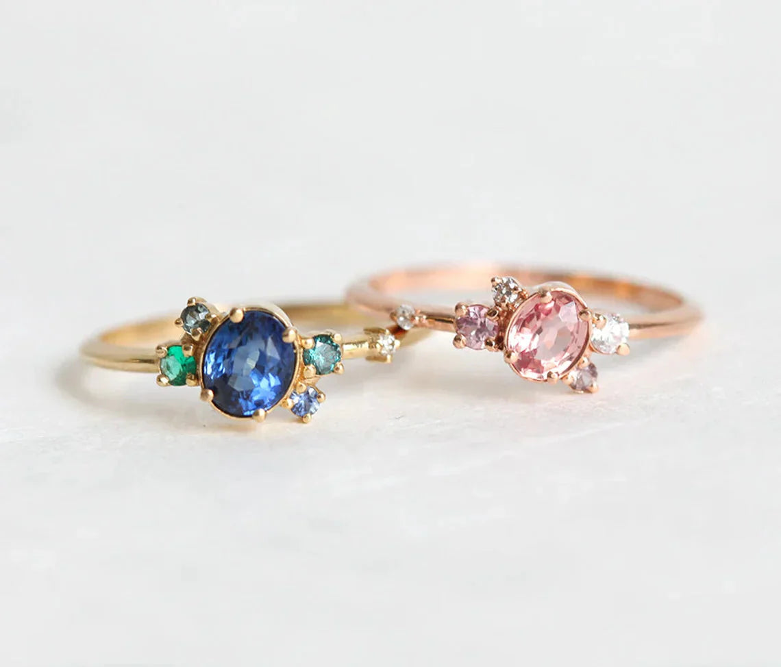 This design can be made with gemstones of your choosing. If you would prefer a custom ring, please contact us before purchase.