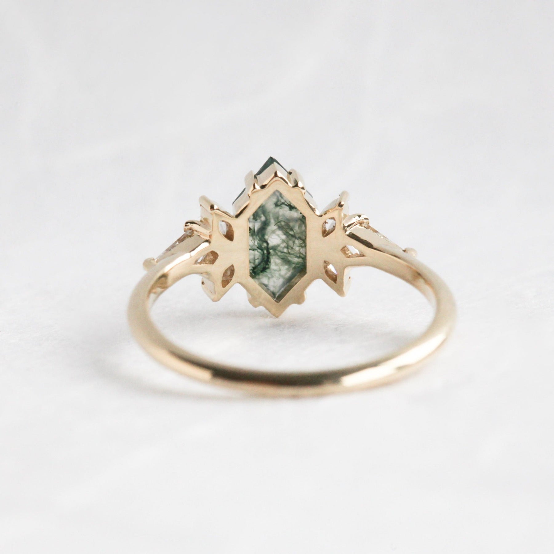 TORI HEXAGON MOSS AGATE RING WITH ACCENT DIAMONDS