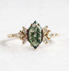Tori Hexagon Moss Agate Diamonds Ready to Ship