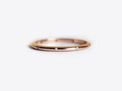 Delicate and elegant, this fine band holds nine diamonds and is handcrafted in 14k or 18k solid gold or platinum. Perfect for stacking or a minimalist wedding band and a graceful way to highlight your feminine style.