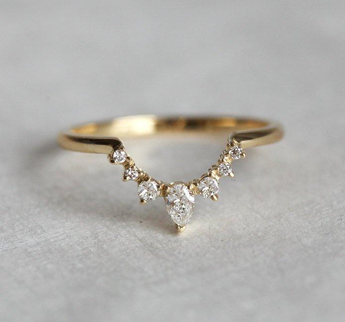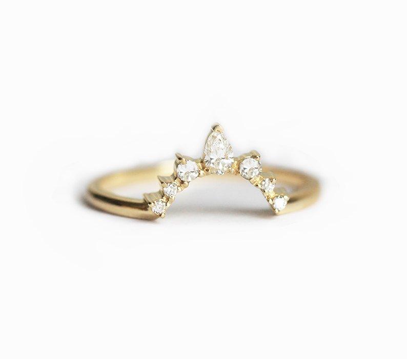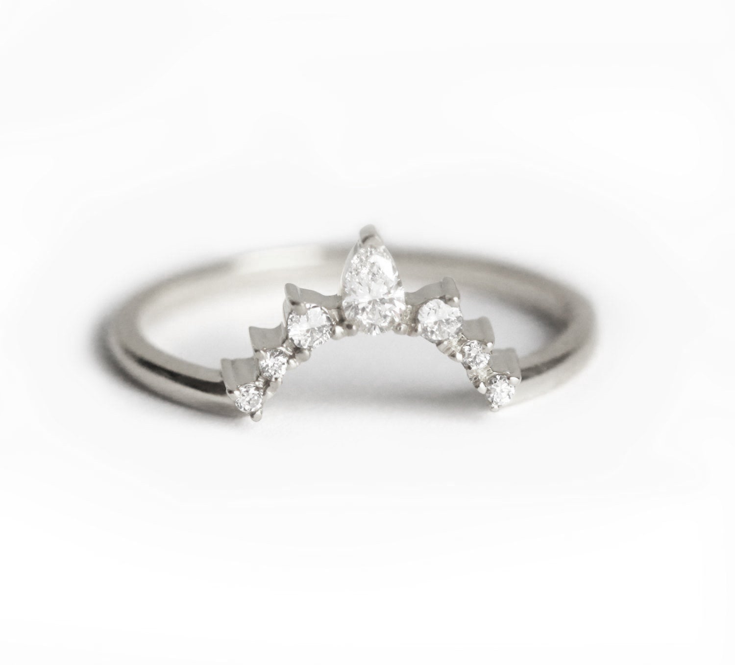 Beautiful and special White Diamond wedding ring, made to fit your engagement ring perfectly. It looks best with a round, pear, oval, or cushion-shaped engagement ring or three-stone ring like in the pictures online.