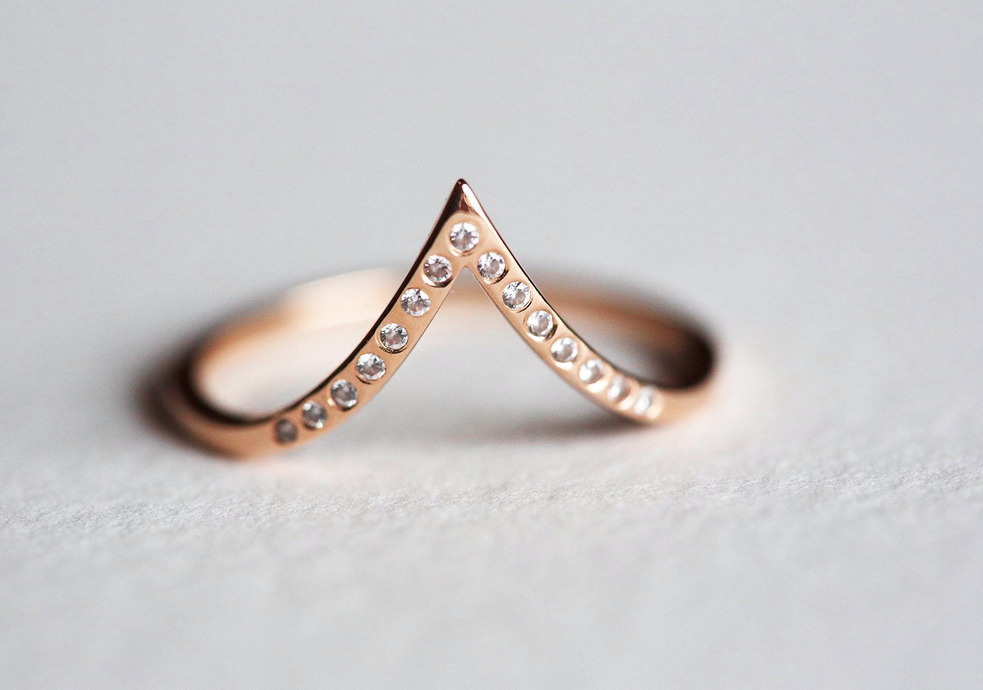 For those who appreciate modern designs, this simple gold curved thin diamond band made in 14k or 18k gold is a must have. Perfect as a dainty wedding, stacking or midi ring.